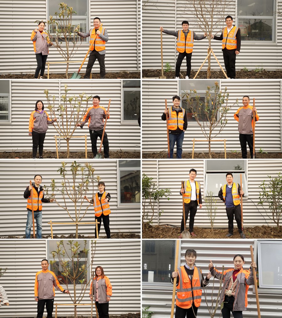 經(jīng)過一番辛勤勞動(dòng),桂花、梨樹、葡萄、金橘、琵琶等近百棵樹苗全部植根小黃蜂沃土,一株株樹苗圍著工廠迎風(fēng)挺立、錯(cuò)落有致,呈現(xiàn)出生機(jī)勃勃,成為小黃蜂智能制造工廠一道亮麗的風(fēng)景線,讓春天的廠區(qū)更顯盎然生機(jī)!