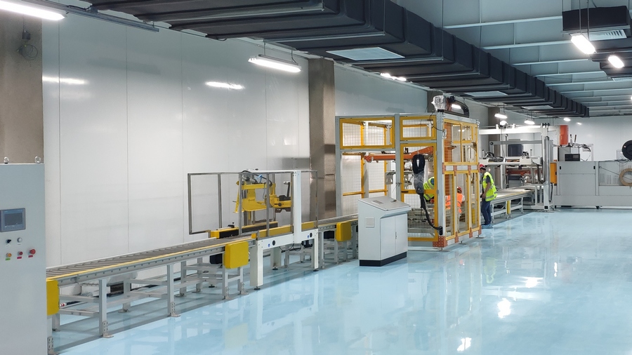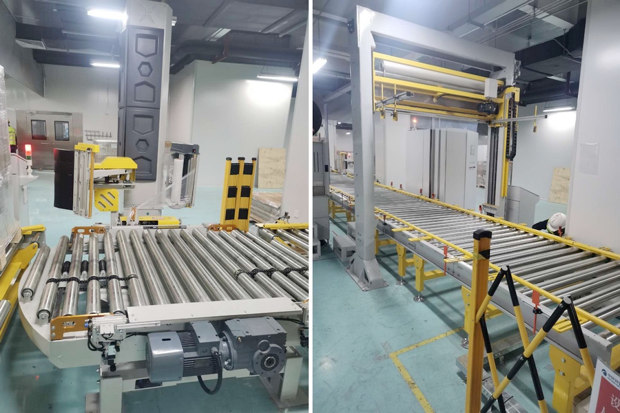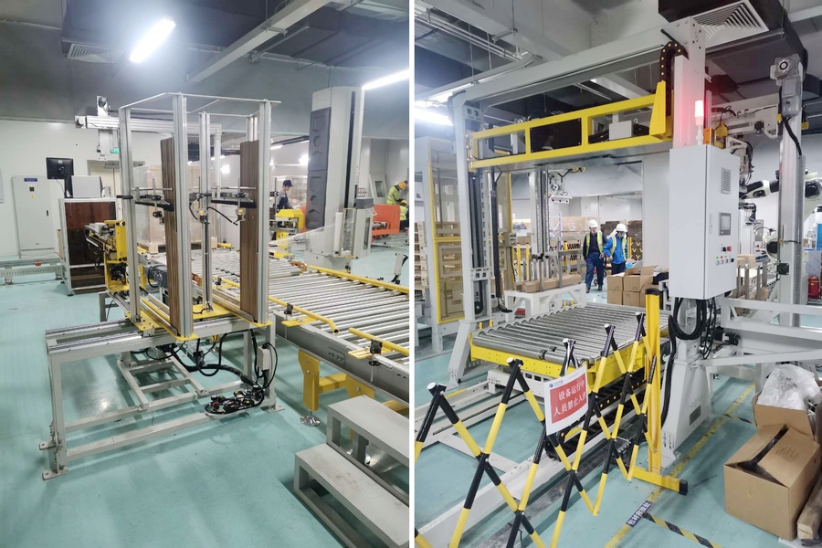 近日,小黃蜂攜通過式覆頂機、S300在線纏繞機聯(lián)合麥斯泰克MK300全自動穿劍式打包機以及自動上護角機、自動側(cè)護角機、旋轉(zhuǎn)移栽車,成功建立天津高端半導(dǎo)體產(chǎn)業(yè)園自動化流水線的二期項目,并進入調(diào)試尾聲階段,收官在即!