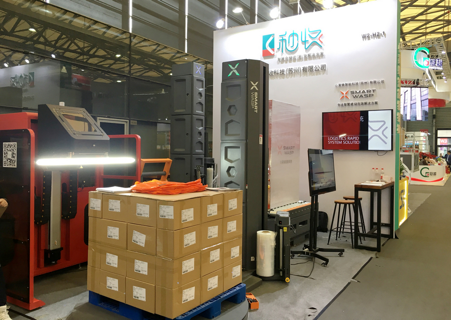 展會(huì)現(xiàn)場(chǎng),小黃蜂以X100(全自動(dòng)智能纏繞機(jī))和S300(在線(xiàn)式智能纏繞機(jī))兩款代表型產(chǎn)品閃亮登場(chǎng),吸引了無(wú)數(shù)眼球。專(zhuān)注智慧倉(cāng)儲(chǔ)收(發(fā))貨解決方案的機(jī)器視覺(jué)批量入庫(kù)系統(tǒng)-——秒收設(shè)備,也備受矚目,更是吸引了大批同行駐足觀看。