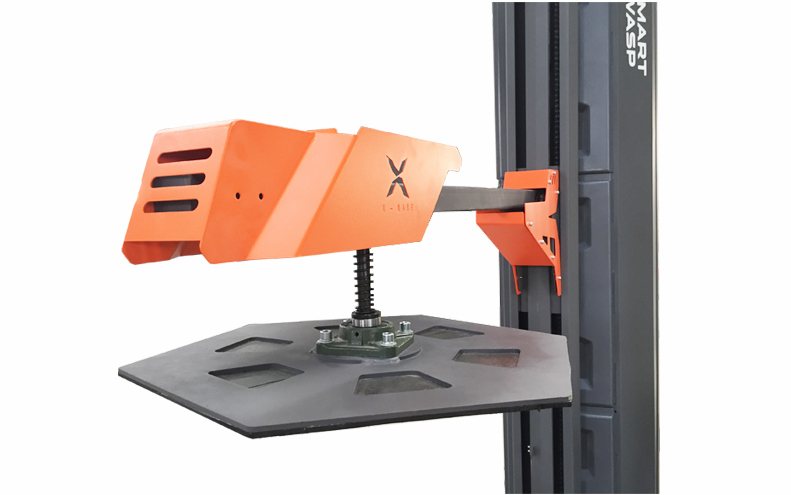 采用電動(dòng)加壓系統(tǒng),防止貨物纏繞過程中的散落和位移,加壓行程500mm-2000mm;