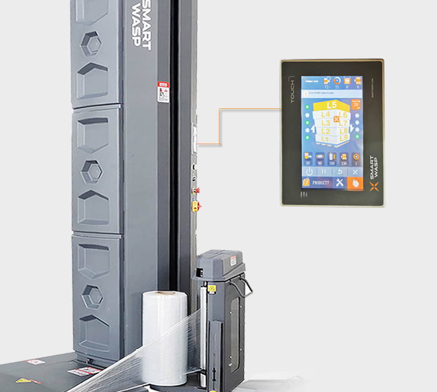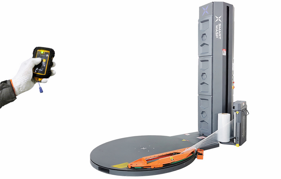 小黃蜂X100全自動(dòng)智能纏繞機(jī)可自動(dòng)切膜、夾膜,無(wú)需再使用手或工具進(jìn)行斷膜或?qū)⒛し旁谕斜P(pán)上,大大提高工作效率。